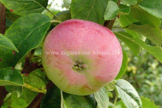 krustojums. Āboli sulīgi, saldi, zaļgandzelteni ar sārtu svītrojumu. Sāk ražot tūlīt pēc Baltā Dzidrā.