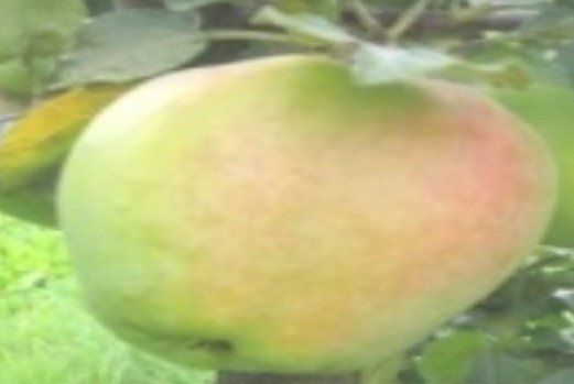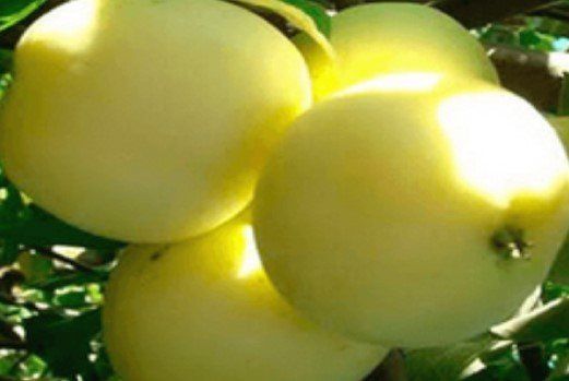 Augļi lieli, plakani ieapaļi, dzelteni ar dzidru oranžīgu virskrāsu saules pusē, saldskābi.